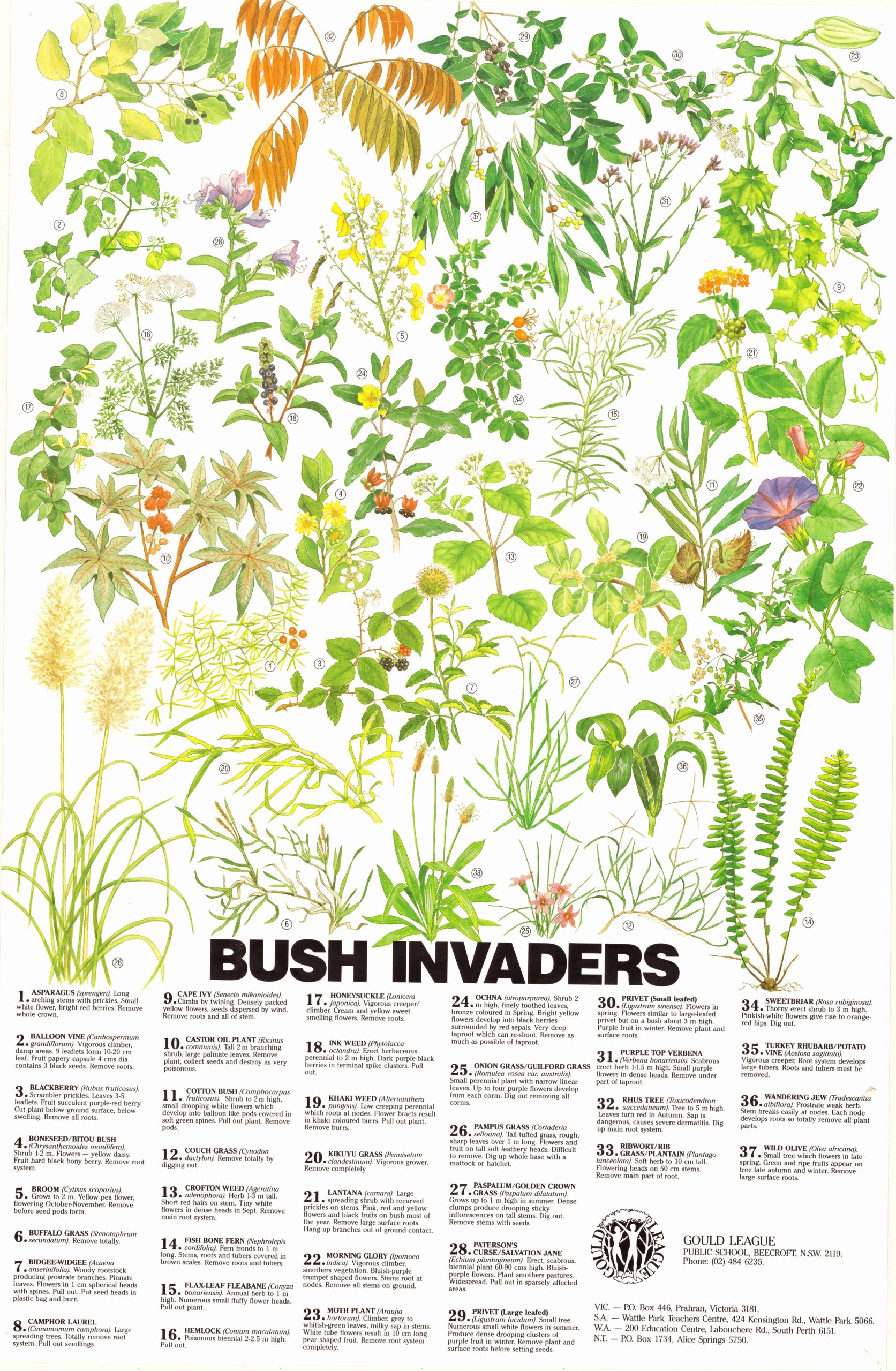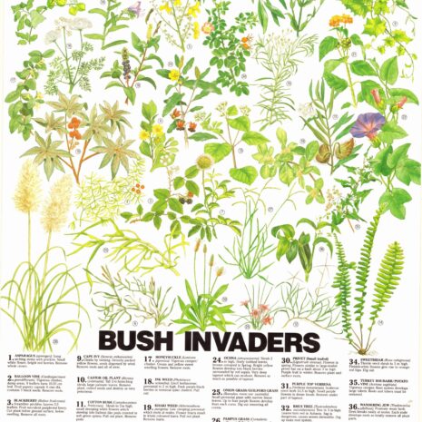 This gorgeous retro poster features 37 bush invaders along with tips and hints on how to regenerate local bushland.