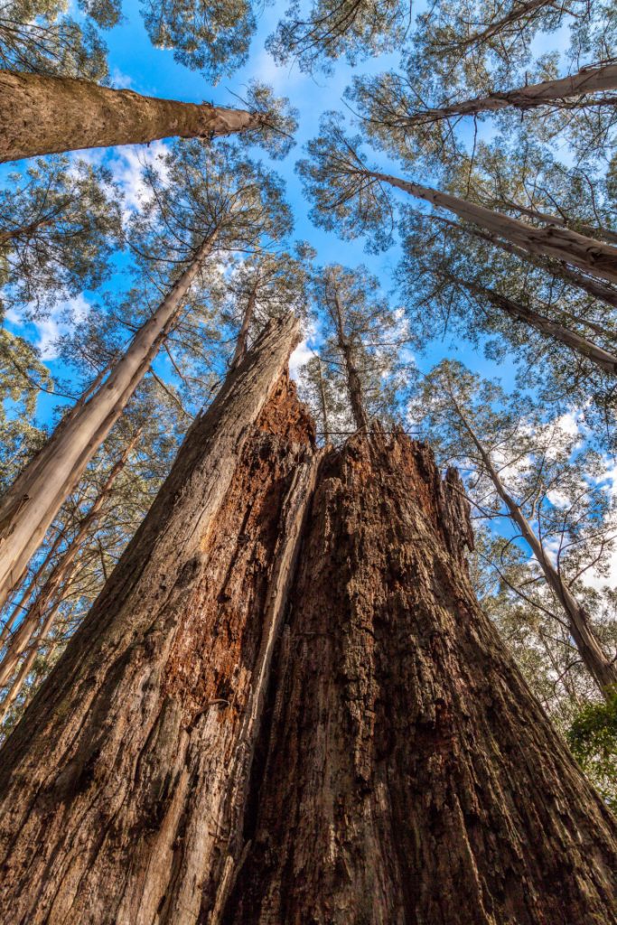 - Look up to the tall tree tops from within the Mountain Ash forest
